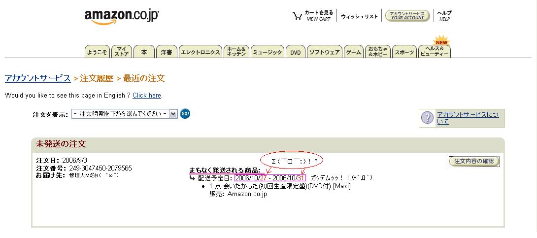 アマゾンから配送のメールキタ━━━━━(゚∀゚)━━━━━!!!!